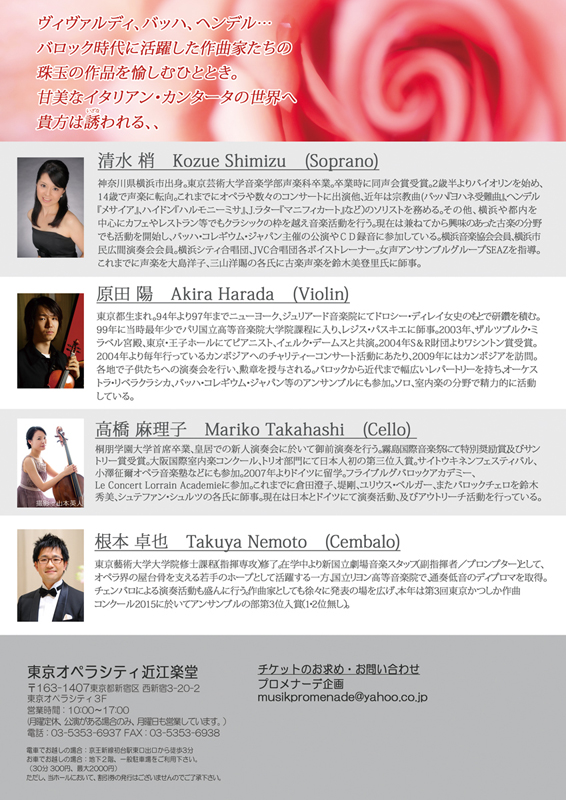 チケットのお問い合わせは プロメナーデ企画 musikpromenade@yahoo.co.jp まで。